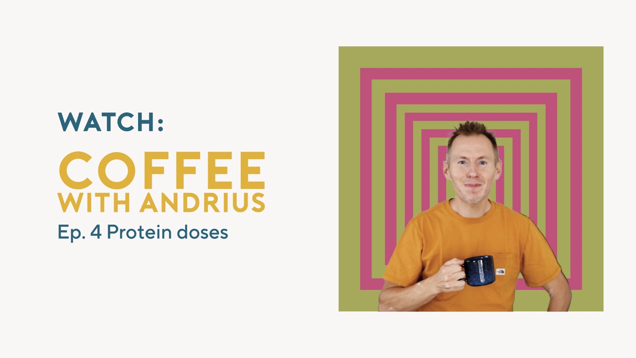 Hey, welcome to another episode of Coffee with Andrius. From the last time we know that protein is important in our diets, but how much do we need and how often do we need it? The easiest way to talk about protein doses is in grams of protein per kilogram of body weight per day. So in this video, I'll be talking in those terms.