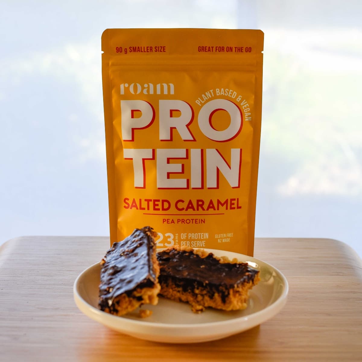 Sports Nutritionist Nina Gelbke (@naturally_nina) whipped up these Salted Caramel Chocolate Crunch Protein Bars with Roam Salted Caramel Protein. We've tried them ourselves, and they have the seal of approval in our household! Give them a try yourself!