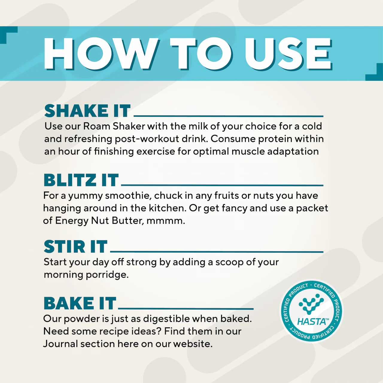 With over 22g of plant protein and less than 1g of sugar, Roam gives you the muscle-repairing power of protein without the fillers or artificial junk.