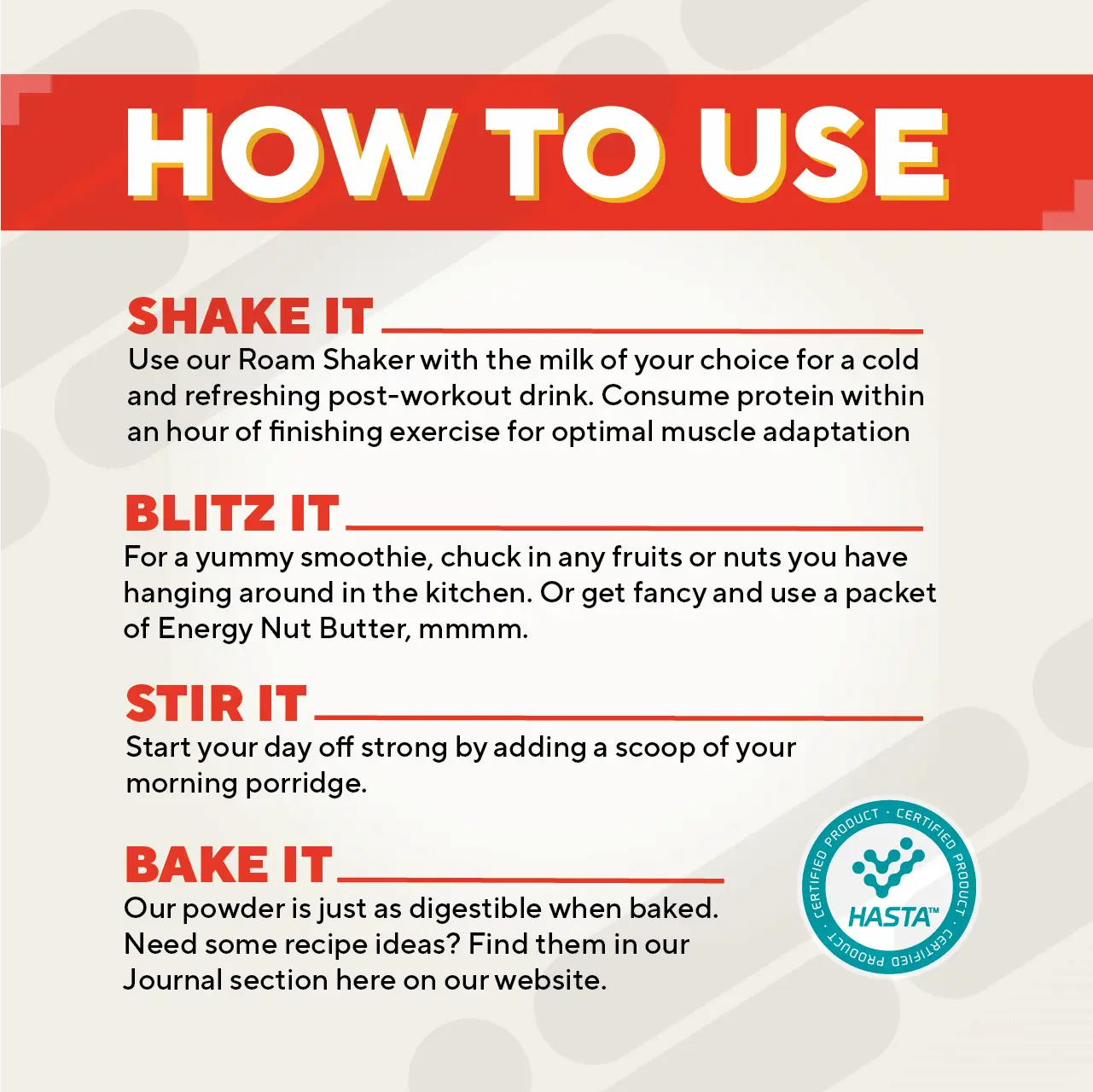 With over 22g of plant protein and less than 1g of sugar, Roam gives you the muscle-repairing power of protein without the fillers or artificial junk.